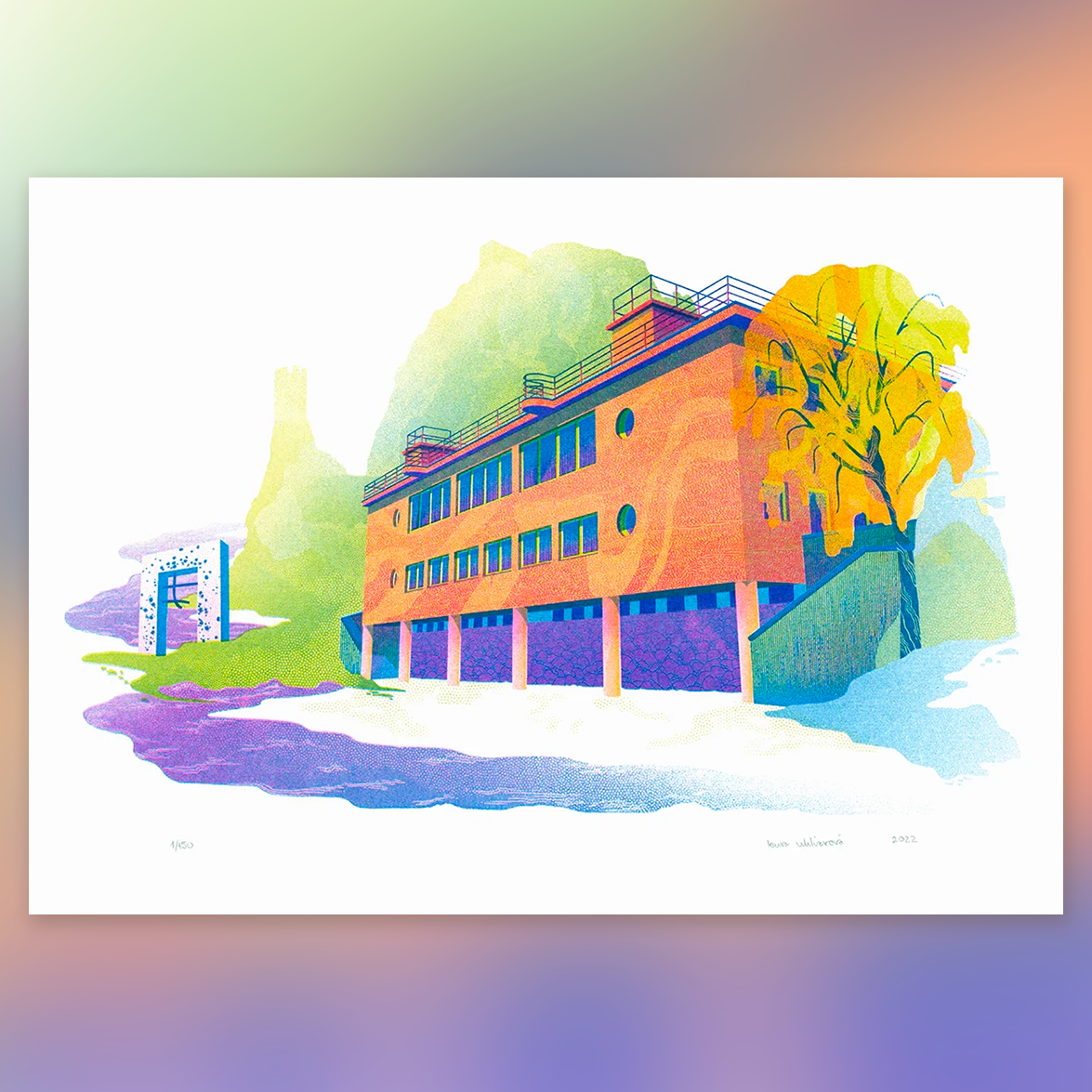 Použité farby: lime pie, fluorescent pink, blue