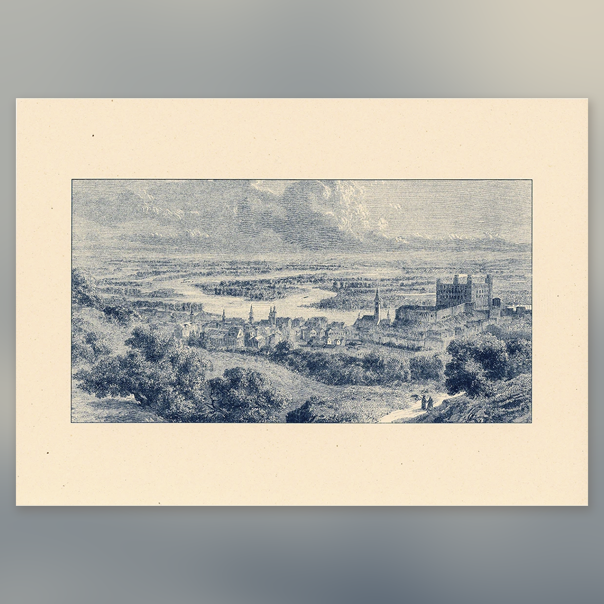 Risografia dobovej veduty. Pohľad na Bratislavu z 19. storočia zo severu.