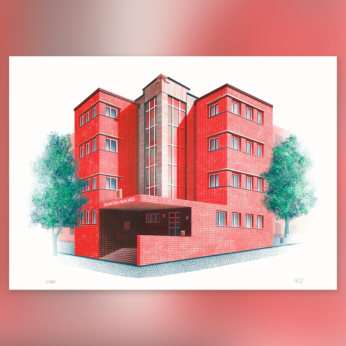 Štátnu ľudovú školu na nároží Palisád a Škarniclovej ulice v roku 1935 naprojektoval architekt J. Burjan . Neskôr ju 30. mája 1937 slávnostne otvoril Dr. Milan Hodža a odvtedy niesla jeho meno – Štátna ľudová škola Dr. Milana Hodžu. Škola s pôdorysným tvarom v podobe písmena L má vstup na zvýraznenom nároží obloženom keramickými obkladačkami. Architektonicky je škola riešená v jednoduchom a neskorofunkcionalistickom duchu. Dispozične je budova dvojtraktová s chodbami orientovanými do oboch ulíc a s učebňami do dvora.